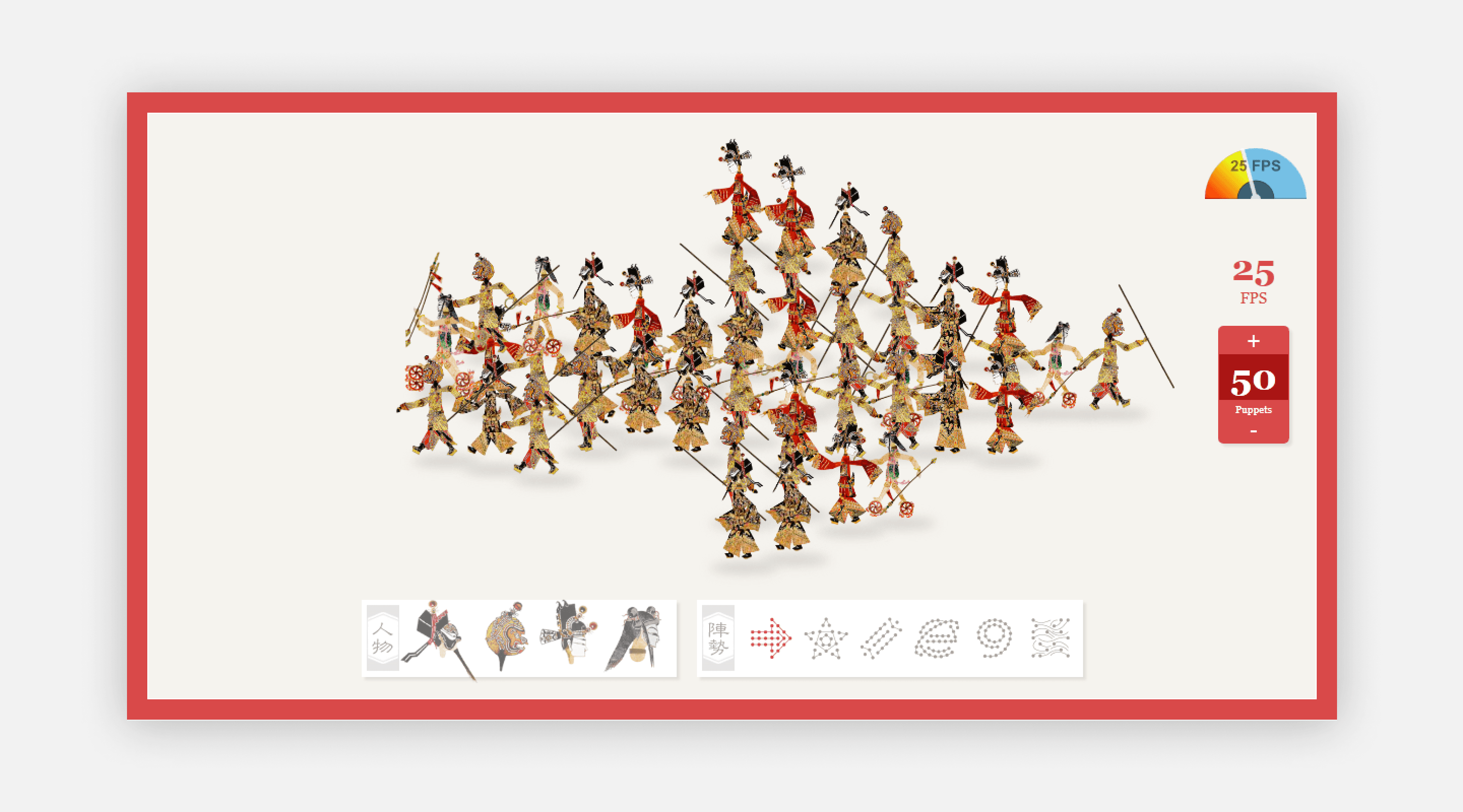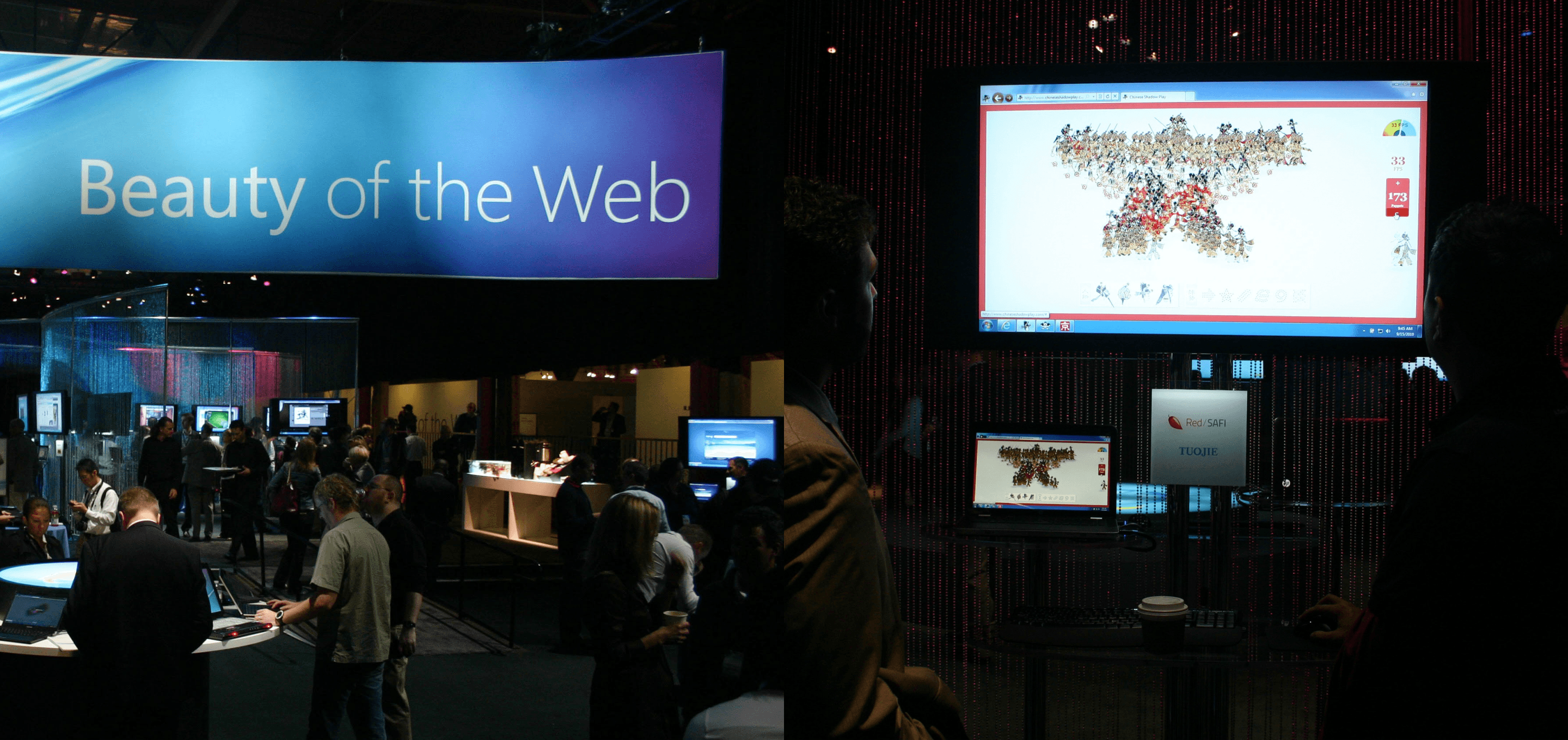 During the release of the latest Microsoft IE browser at the time, I designed and built two technical experience web apps. One of them took the idea from traditional Chinese shadow-play and leveraged the performance capabilities of the IE browser. The app runs on HTML 5 canvas with massive graphics, physics motion, and interaction. The app was live along with the IE launch event and I demonstrated it at the news conference in San Francisco.